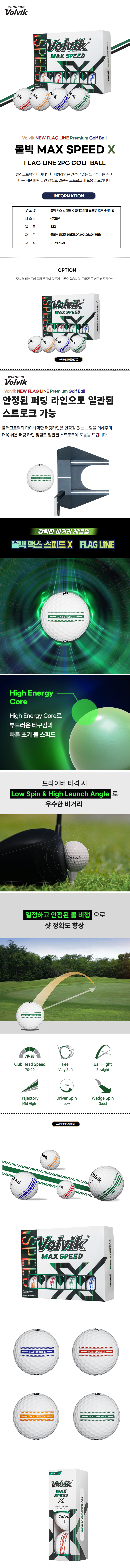 볼빅 맥스 스피드 X 골프공 플래그 라인 고반발 2피스 골프공
